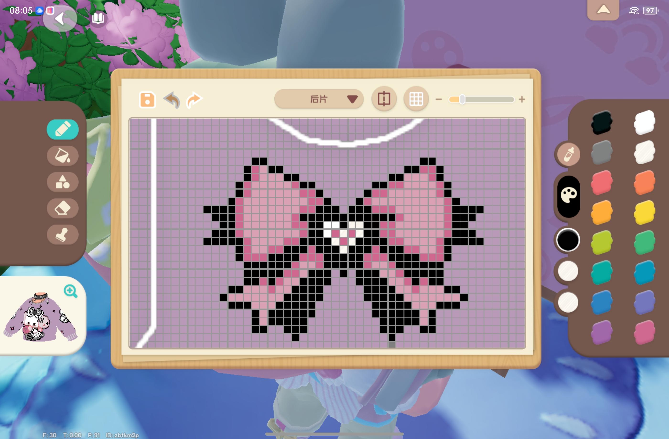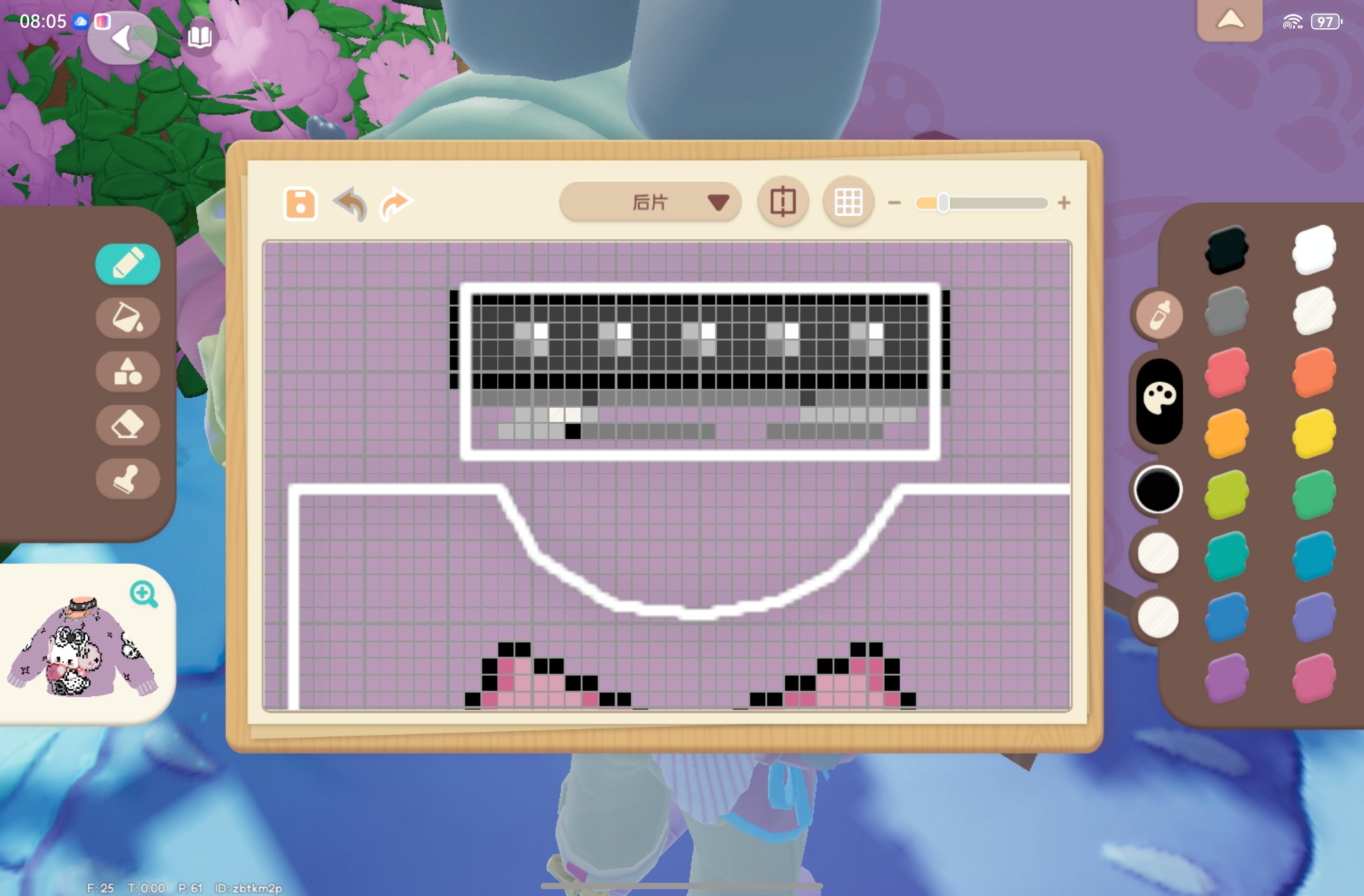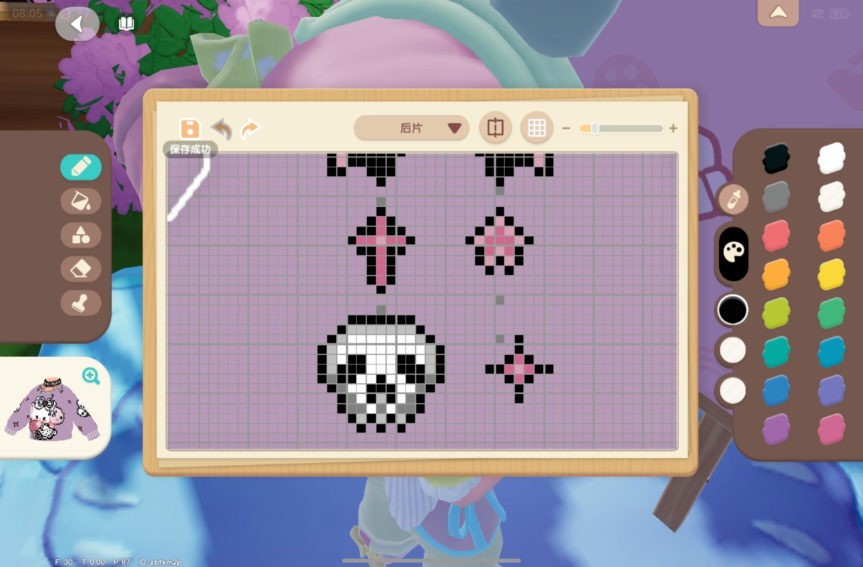 此作品为烬月祭衣。紫藤花下燃烬的月光和魔法杖交织的神秘祭祀,运用蓝紫色调,领口与袖口上添加了独特的异域风装饰,通过层层叠叠的衣襟配饰展现独特的异域风情。格子图已附,喜欢的宝宝可以投一票自取格子图#心动小镇域风织彩