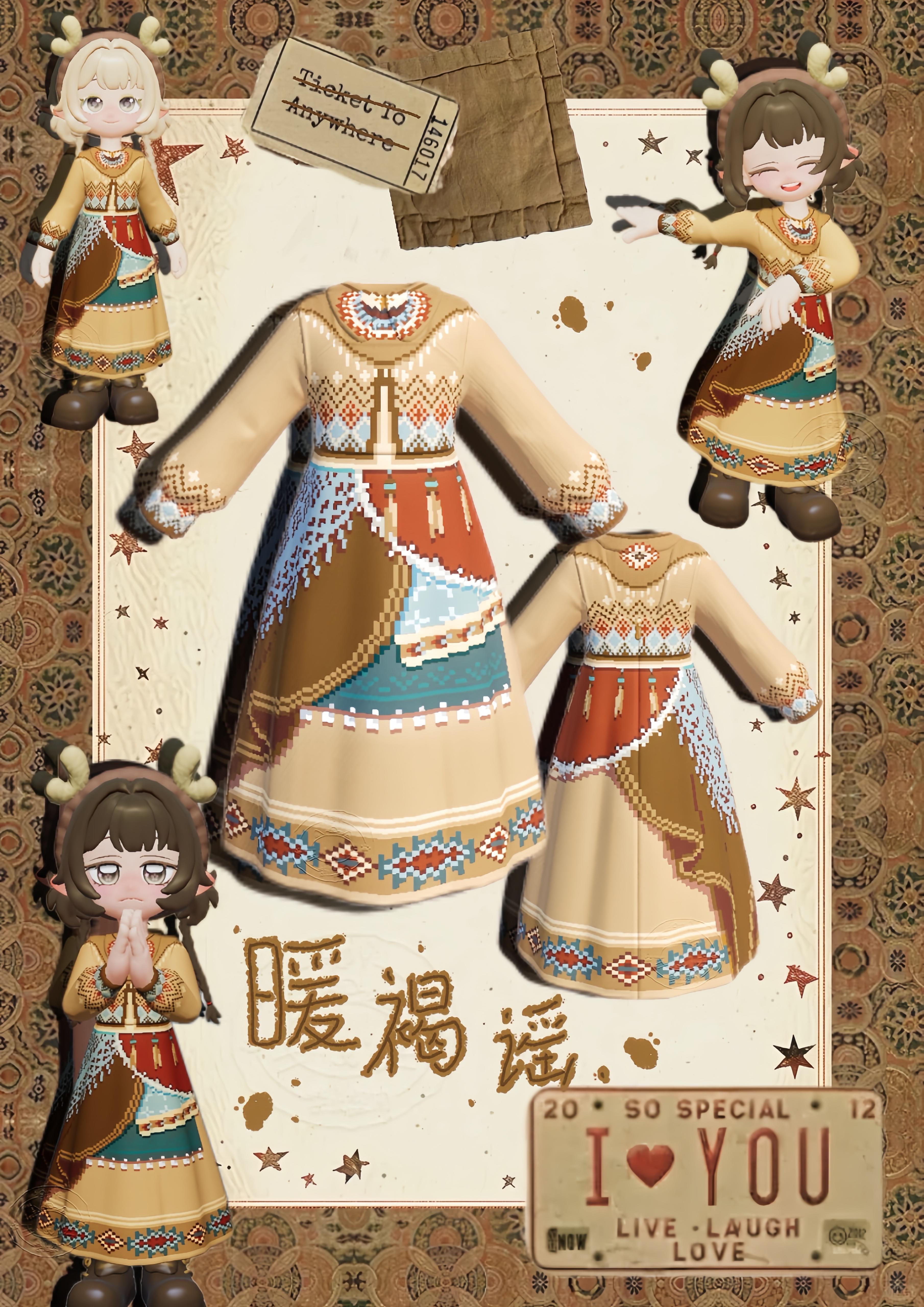 今天的女鹅是波西米亚风格的裙子小裙子感觉非常适合日常穿呢好搭配的呢#心动小镇 #心动小镇冰雪季创作征集 #心动小镇域风织彩