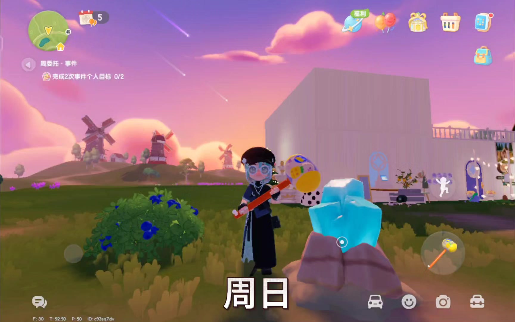 找不到的宝看过来 18~24点流星雨 注意只能敲1次(3下)哦 朵朵在花田巴士站 注意:流星雨是常驻天气 陨石颜色随季节更换 #心动小镇 #心动小镇攻略