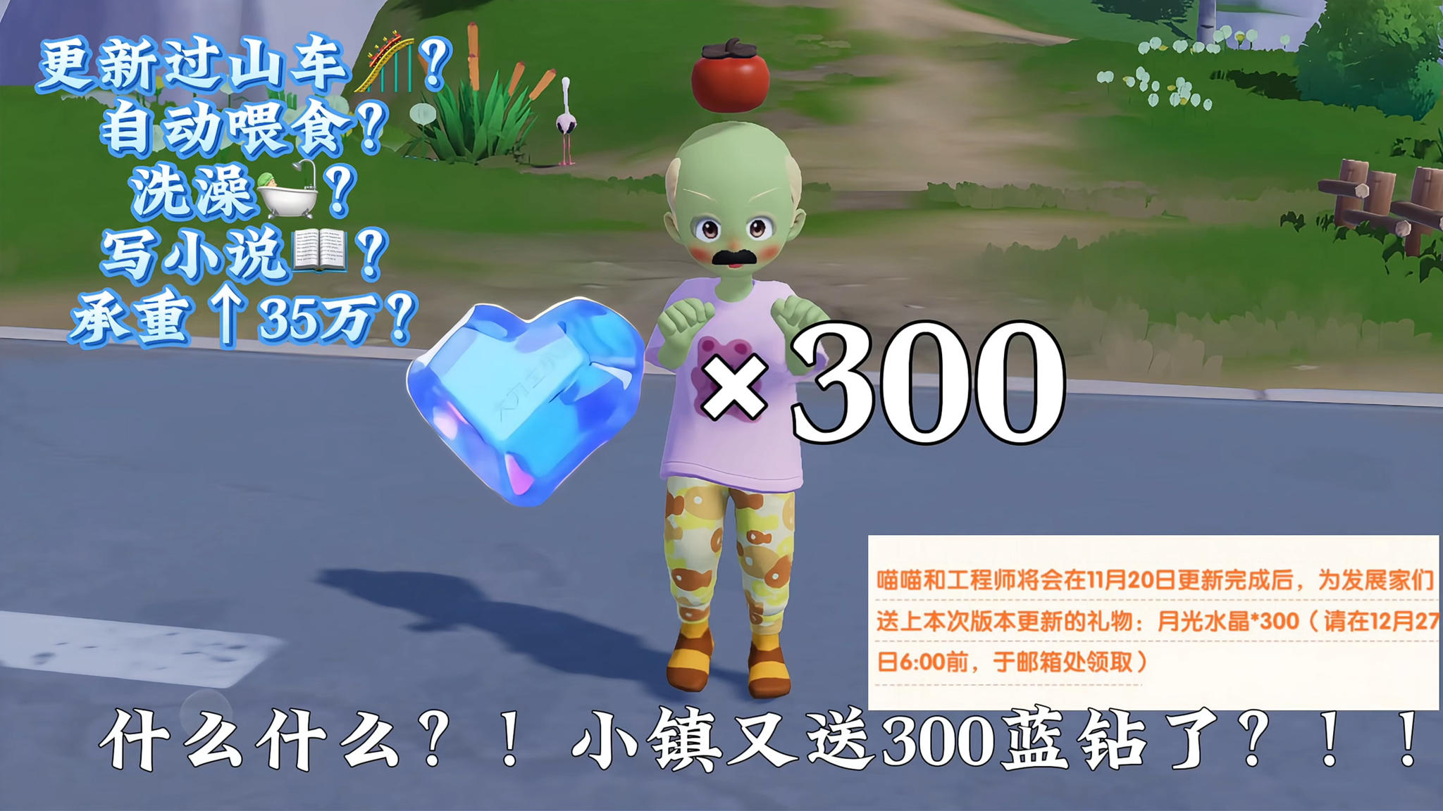 11月20号更新后不仅送300蓝钻,还有宠物自动喂食器!