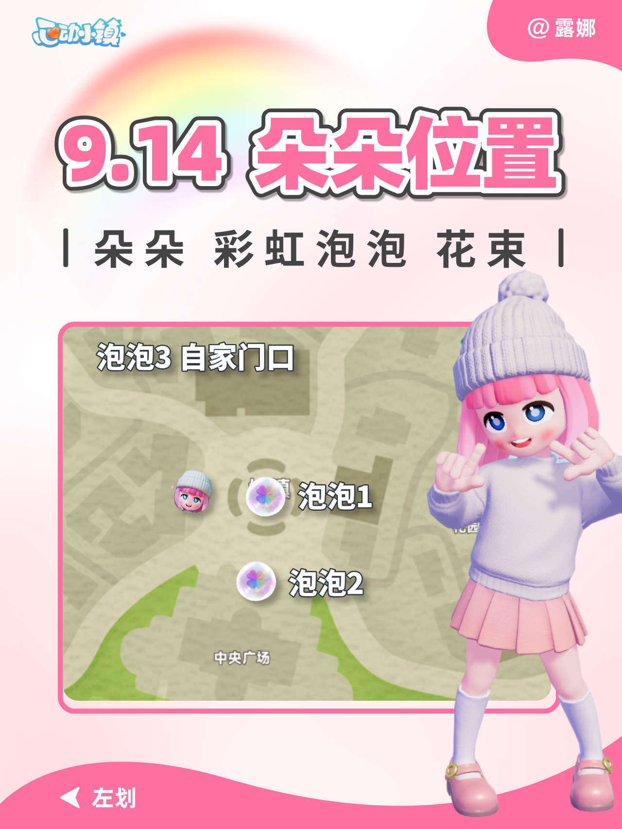彩虹时间 18~24点 朵朵位置 城中心巴士站 泡泡1鲸鱼喷泉 泡泡2 市政府门口 泡泡3 自家门口 #心动小镇 #心动小镇攻略