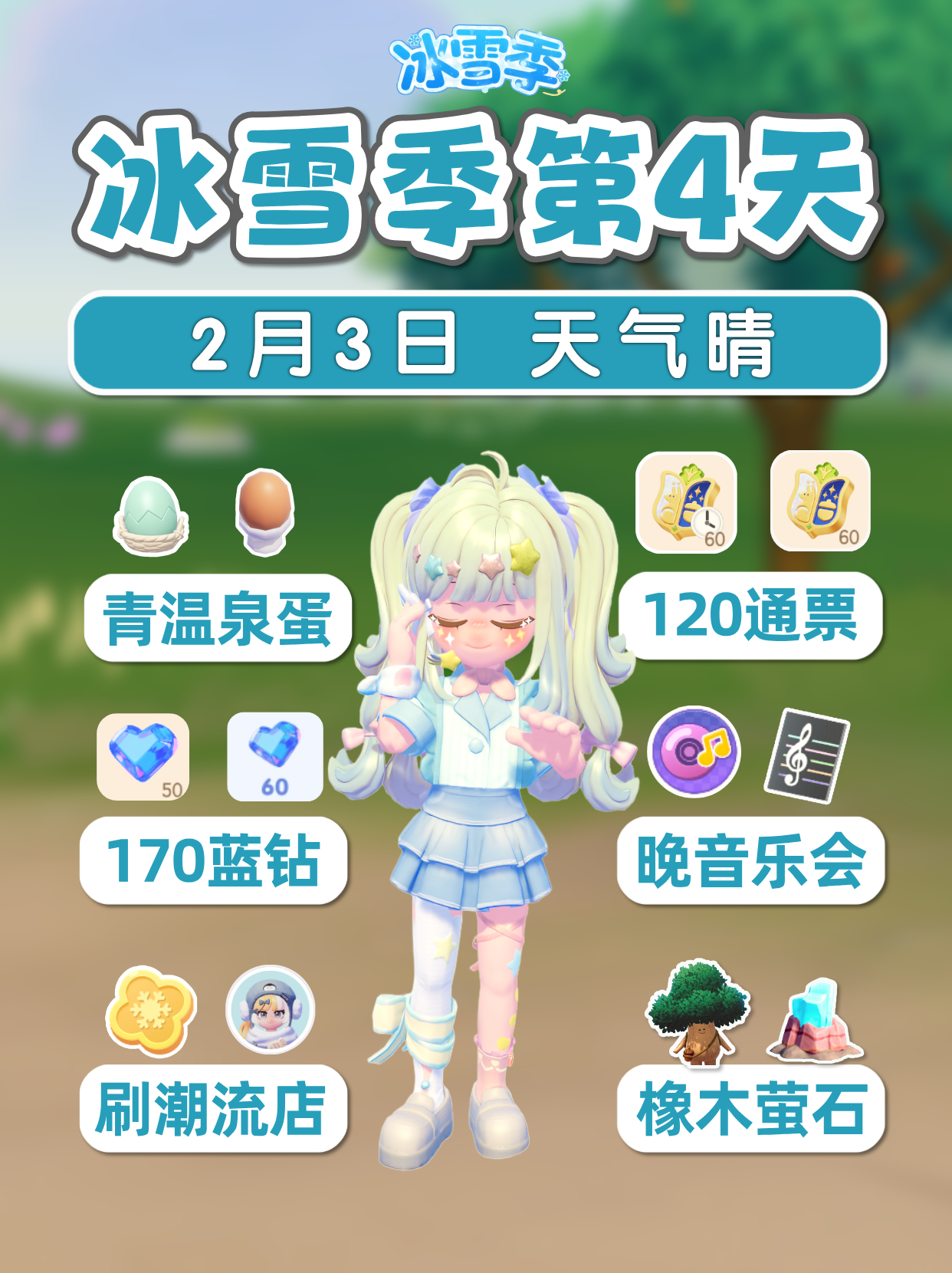 2月3日 青色温泉蛋 免费120票 170蓝钻