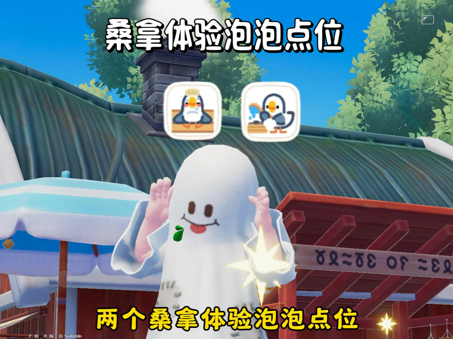 ✨桑拿体验泡泡位置 温泉水汽:温泉山入口左边会移动 雾式享受:渔村房顶烟囱上 (找之前需要点一下谜面泡泡才能显示) [爱心]沸雪浴场 (新虫) 雪块虫 花田-鲸鱼山 煤块虫 森林-小鹿塔 石块虫 温泉-火山湖 冰块虫 渔村-灯塔 (任何时间与天气) [新鱼] 黄色浴巾帽鲭鲨 绿色浴巾帽鲭鲨 白色桑拿帽海龟 条纹桑拿帽海龟 都在东海区域👣 [任何时间天气] 🍰🍰🍰🍰🍰🍰 食谱 [需使用灶台:蒸汽式桧