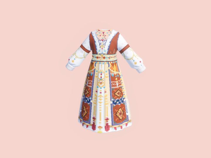 艾特来丝绸,五彩斑斓,似天上彩虹,落人间。衣服融合了传统艾德莱斯绸与精致纹样的维吾尔族服饰,“流霞”形容衣料如天边云霞般绚烂,充满异域风情。“云裳”则赋予其飘逸仙气,凸显服饰的文化底蕴与美感。#心动小镇域风织彩 #心动小镇 #心动小镇创作计划 #心动小镇安利 #心动小镇冰雪季创作征集 #游戏推荐 #互赞