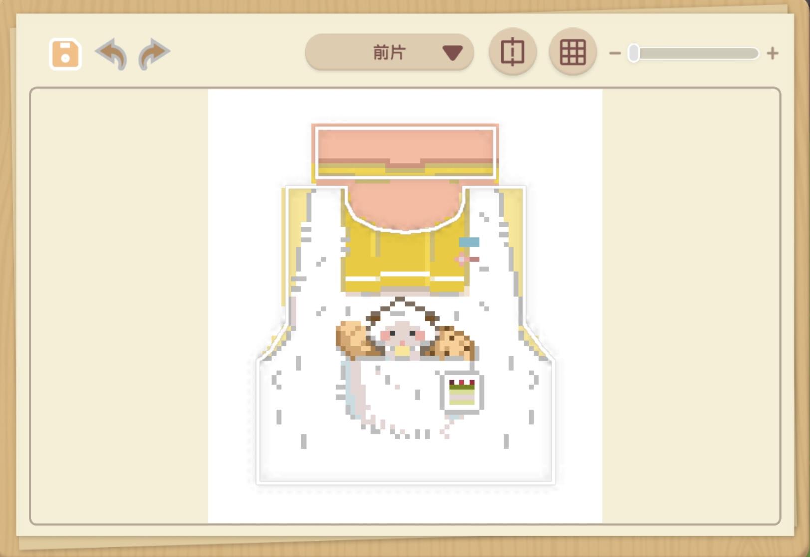 1.油小熊与曲奇饼干为核心视觉元素,正面围裙印有像素风曲奇图案和领口,裙摆处点缀小熊头像剪影,整套设计主题统一且充满童趣。2.正面围裙与背面交叉绑带形成视觉呼应,裙摆的格纹拼接与边缘的小熊剪影增加了层次感,袖口的收口设计则提升了整体的精致感。3.采用浅米底色搭配暖棕装饰,低饱和度的柔和色调既凸显了甜美元气的氛围,又不会显得过于花哨。 核心风格:甜系可爱风,融合了洛丽塔的精致感与田园风的松弛感