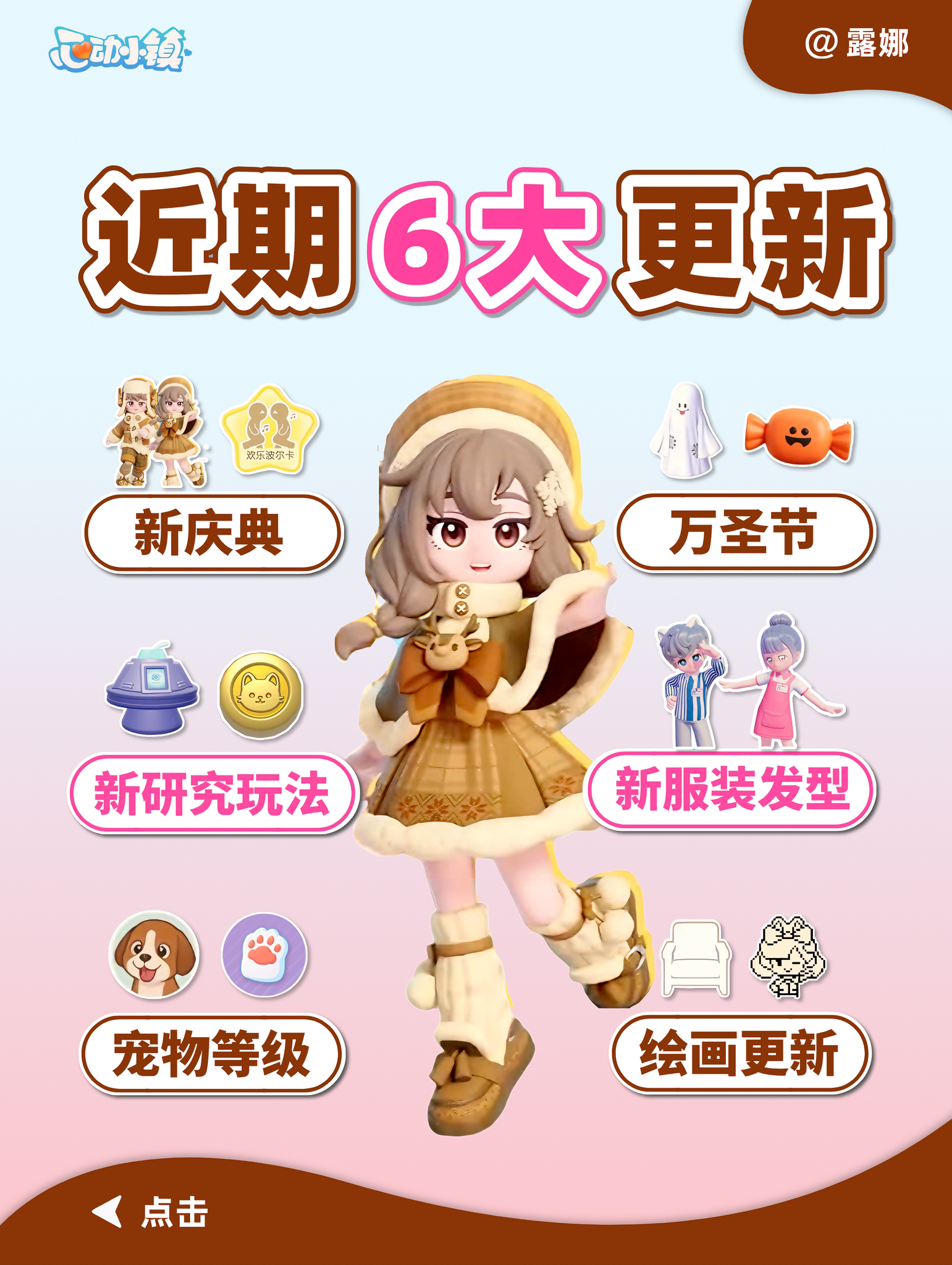 10月30日 更新 研究、服装发型、宠物等级、绘画 10月31日 更新:万圣节限时活动 11月8日 新庆典 沸雪浴场 下个大潮流季:轰隆隆冒险乐园 #心动小镇 #心动小镇攻略