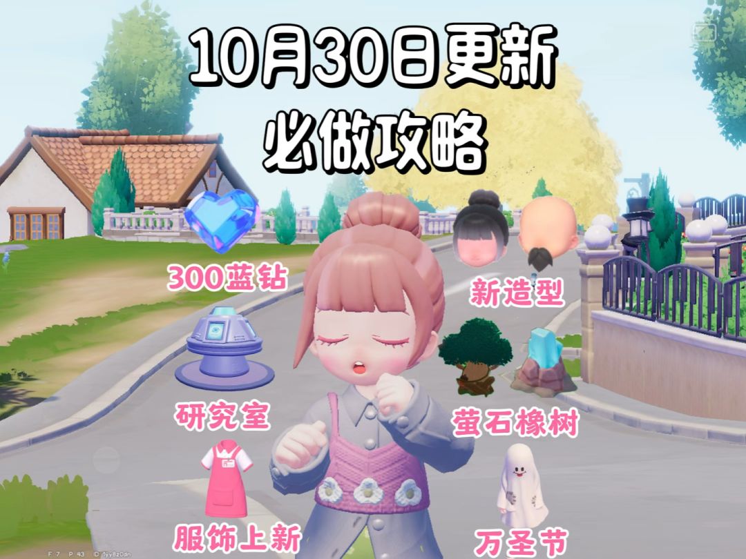 10月30日必做的事 上线即领300蓝钻 新研究室 服装店上新 背包容量拓展 还有明天的万圣节活动开启 #心动小镇