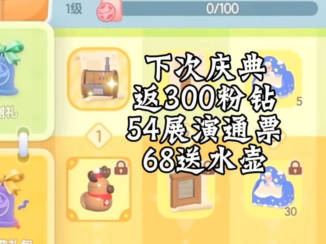 下一个庆典赢麻了!衣服好看!还返300粉钻54展演通票!30送的皮肤是水壶! #心动小镇 #心动小镇攻略 #发现好游戏