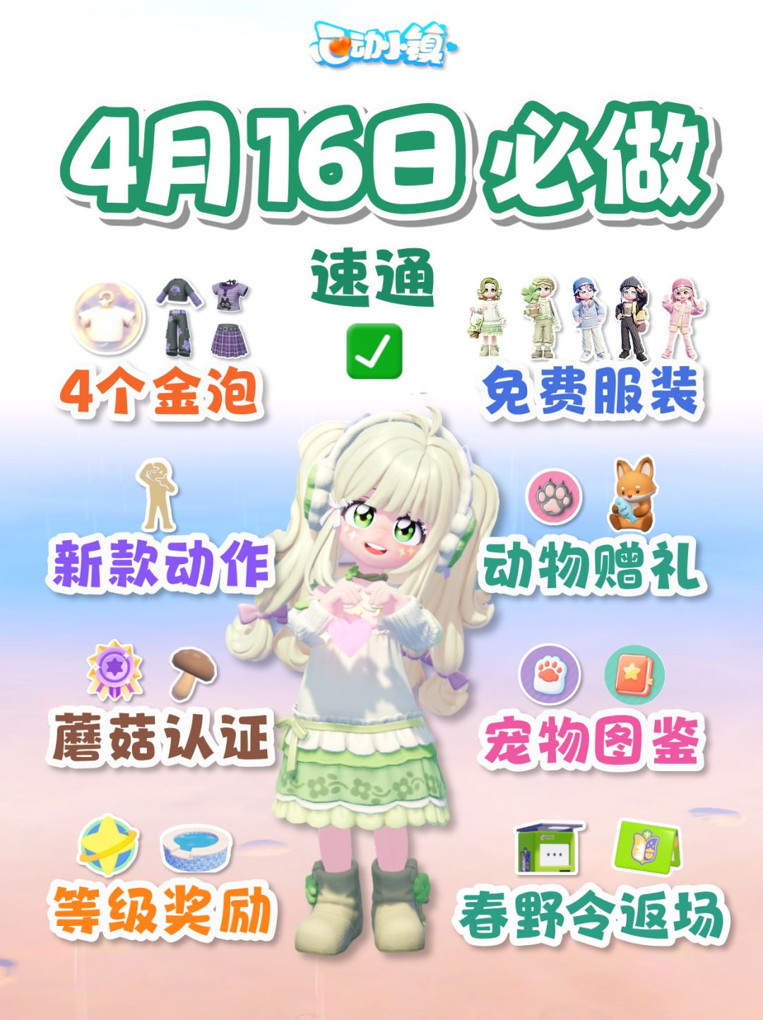 4月16日4金泡 服装 动作 赠礼 图鉴 奖励