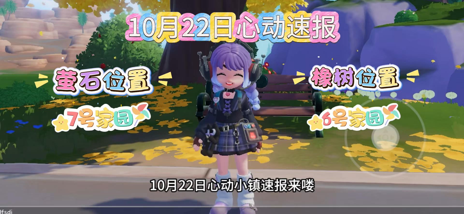 10月22日心动小镇萤石和橡树位置 天气:晴朗☀️ 橡树:6号家园门口 萤石:7号家园门口 #心动小镇 #小镇心动瞬间 #心动小镇新居攻略 #心动小镇兑换码 #心动小镇攻略 #心动小镇日常