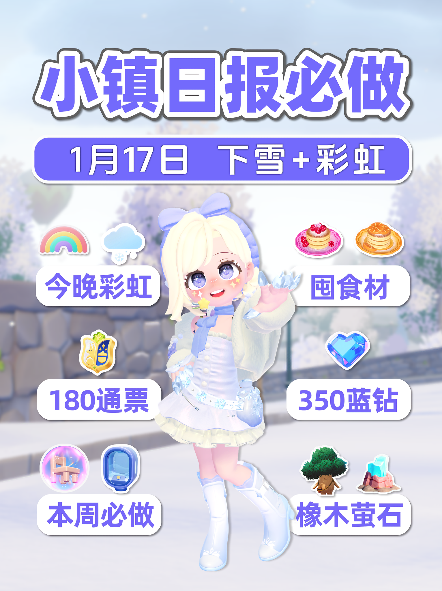 1月17日 下雪彩虹 囤食材 350蓝钻180通票 流星预告