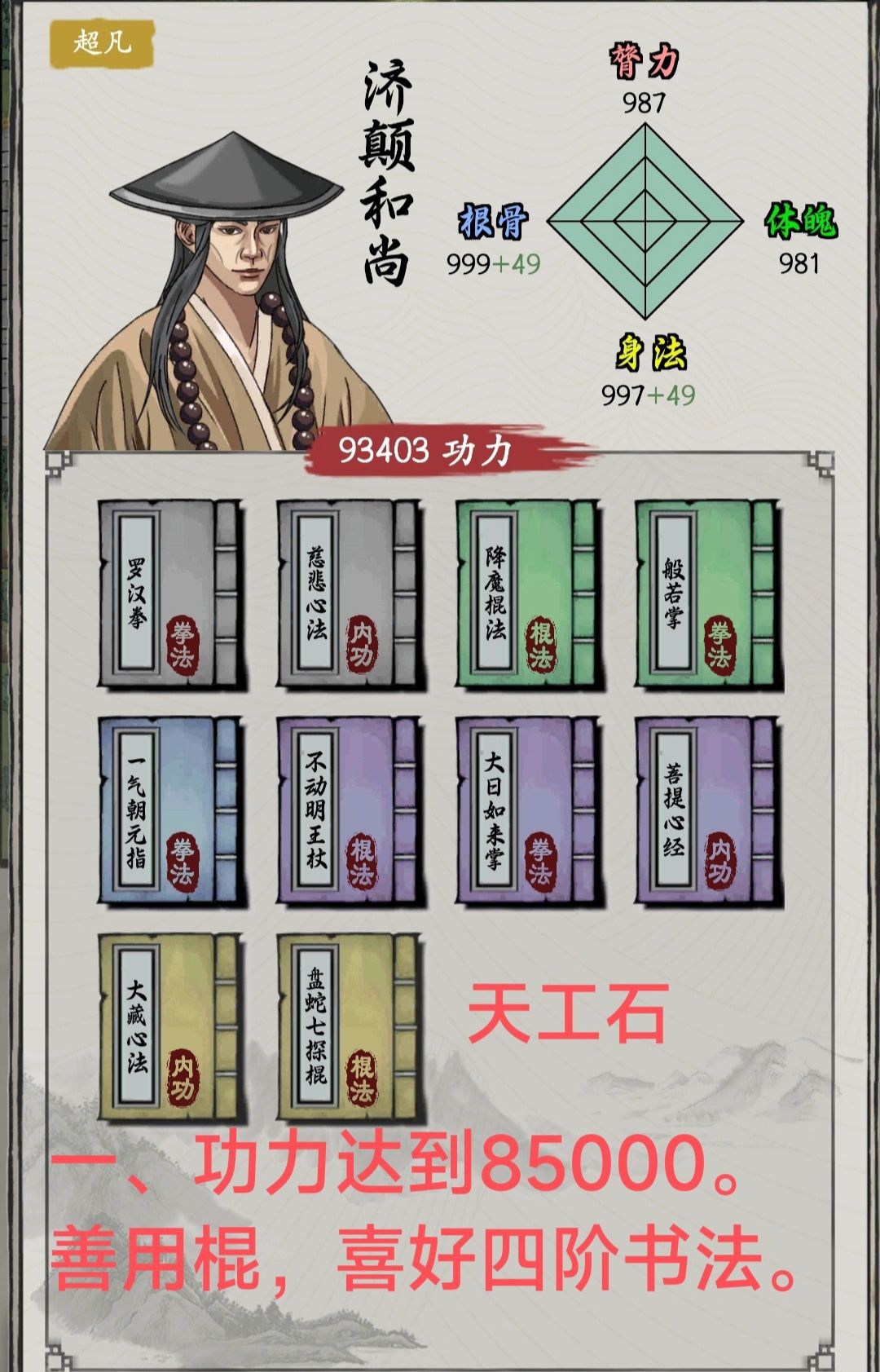 兑换码:dxwx888 6ot4sbyb08 rytgszq6s1po 1,捏脸:封面 脸型14 眉毛9 眼睛17 嘴巴6 头部10 2,练功:20岁以后不推荐练功 体魄→生命(血量) 膂力→攻击(攻击力) 根骨→防御(防御力) 身法→速度(攻速、先手、命中、闪避) 练功加成效果会随着属性的增加慢慢变高,加点点数以100为区间随着升高而降低: 000~100:25~35 100~200:21~29