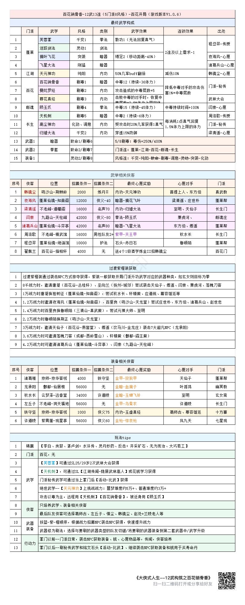 注意!注意!注意!本帖为攻略贴,不喜勿入! --------------------------------------------------- 有朋友想要百花毒流,我就构筑了一下,10武感觉强度不够, 就配了12武的版本。 --------------------------------------------------- 2024.2.7晚 根据游戏版本进行微调,上了最新的百花绝世内功【葬