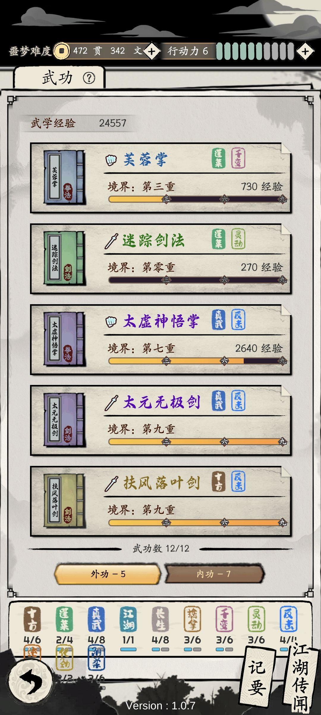 感谢制作游戏の大大,让我节假日又重新疯玩了一次[表情_捂脸哭] 有的新萌可能会和我开始一样,自身战力增长需要等门派紫色武功,而无法在困难/普通模式下拿下首届"天下第一",或者在噩梦首届嫡传弟子"武林大会"拿到门派独有功法,或等门派紫武期间觉得有很多无效操作而郁闷… 感谢坛友分享,让我也少走很多弯路~ 关于战力增长影响因素,个人感觉按重要级别如下排列: 1、加战力最多的1本外功➕加战力最多的1本内功