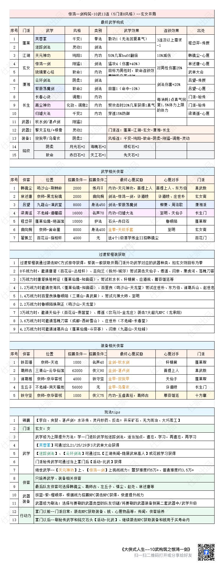 感觉很不错的一款单机武侠游戏,试玩玩了很多个build,今天游戏正式上线了,特来分享,应该是系列攻略之一,后续会再发其他构筑和资料。 ------------------ 3月18日更新 本构筑特点: 1. 天元 + 惊鸿一剑,绝配,伤害有几率+80% 2. 刚猛、致命、阴柔、纯阳,几乎所有增伤buff都有了 攻略合集索引贴: https://www.taptap.cn/moment/498990