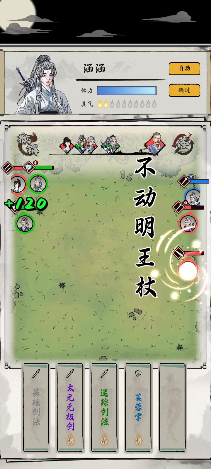 释放真武剑后,防御力提高,不翻倍增幅30%,天元出发翻倍可达60%,背面伤害都会有1点强制伤害,唯一担心就是有千变的怪,但长生弥补了这一块,反击伤害为主输出。 反击,普攻,武学都概率出发阴柔,6阴柔造成15%当前生命值伤害。 其次中毒那些负面技也不用过于担心,有玉虚,40%免疫异常状态 还有九转+10%的闪避概率,还有一个心法闪避提前我们的行动条 真武自带3回气,嘎嘎舒服,15%的玄阴,不指望他,