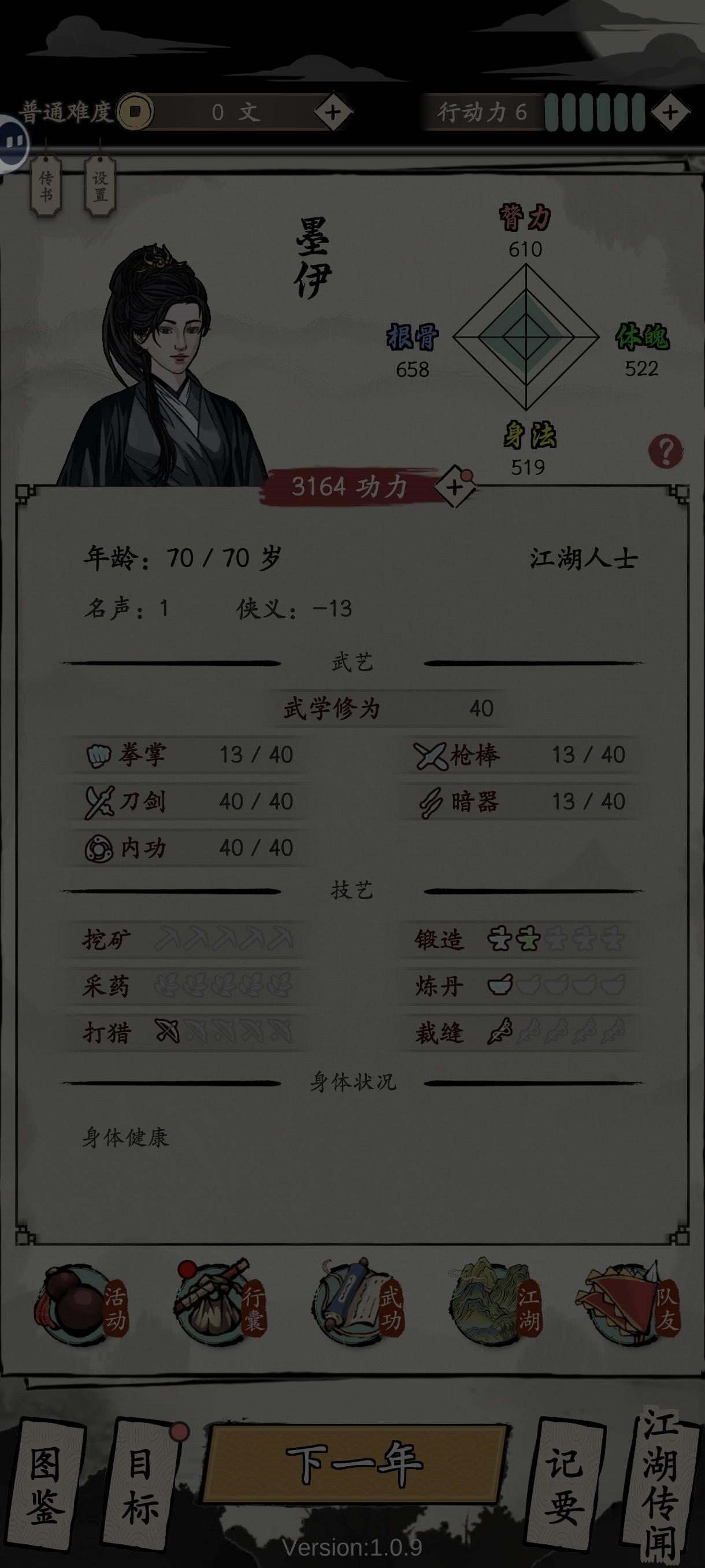 前言:在四维160,10体,12武,下结合另一个大佬28岁速通思路的关于真武噩梦难度下平滑过度到掌门思路的延伸。需要看一定量的广告。部分江湖任务因为游戏特性必须手操。因为真武是绝对正义门派,所以需要控侠义值,不然负侠义每年结束广告看的飞起。因此也不建议玩儿真武刷分,效率不如幽冥、长生、玄女、百花。正文:第一年全加根骨,选李白,懒惰,湛卢剑。第二年根骨+400后全加体魄,选三国,灵丹妙