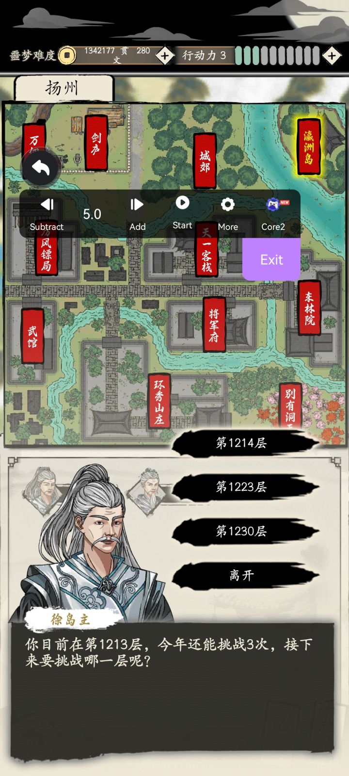 走真武教,视频武功装备流程都很完美不用多说,就说几个最重要的点,别玩千变没有用,虽然我没怎么爬塔,因为浪费时间,一次不落当掌门到死也最多2000多关,算过没有意义,所以目前版本这个游戏只要噩梦能一个打败东西厂的7个就算是最强打法通关,三个重点,第一千变没用,后面爬塔1500后基本不触发,第二左丘子,林术唐一般,噩梦排不上号,左秋子除非走长生们不然别用,林术唐需要很多菩提子,输出再高后面扛不住效果一