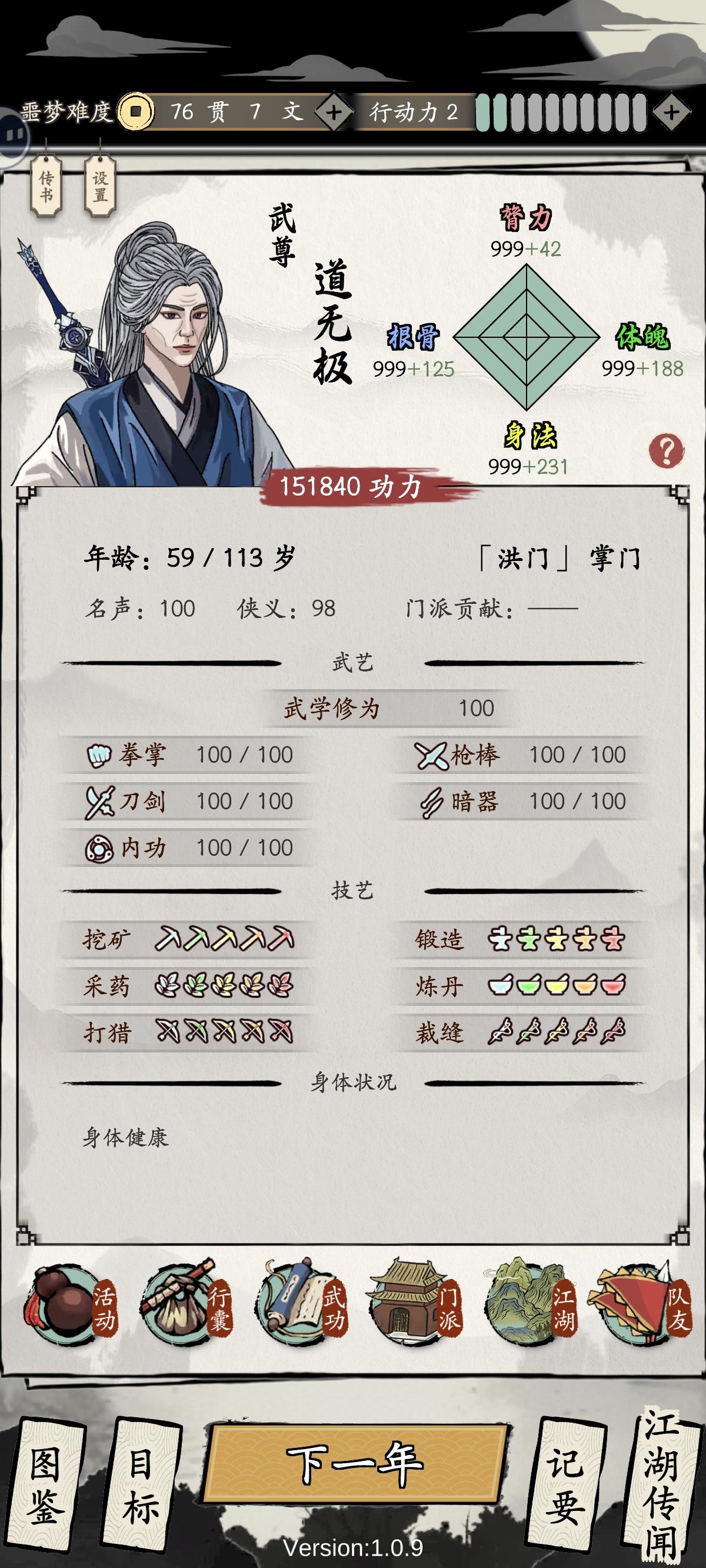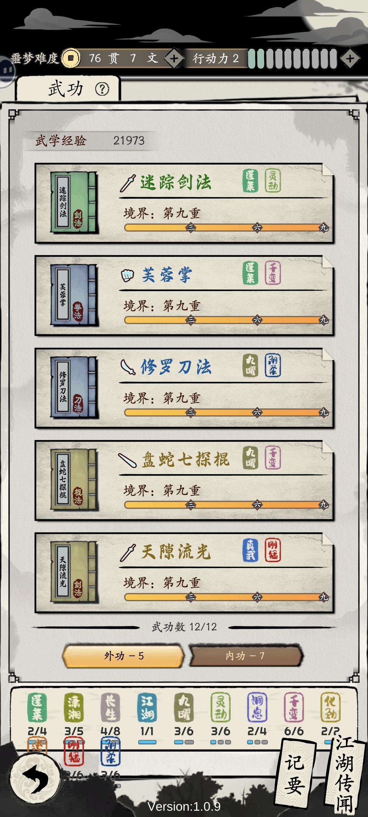🔥天下风云出我辈,一入江湖岁月催🔥💞困难模式 10武 8行动力游戏基础设定:*任→督→冲→带:四脉中最低点亮冲脉大穴行动力+11️⃣以下以玄女斋为例:玄女,幽冥,百花等等很多门派都适用此教学,喜欢用剑,功法就选剑法,喜欢用拳,功法就选拳法,等等主剑副暗器(个人习惯)*困难模式,10武功数 右上角8行动点(冲脉点亮大穴行动力+)① 锦囊妙计选择:李白,贪婪,湛卢三国,灵丹,反击悬