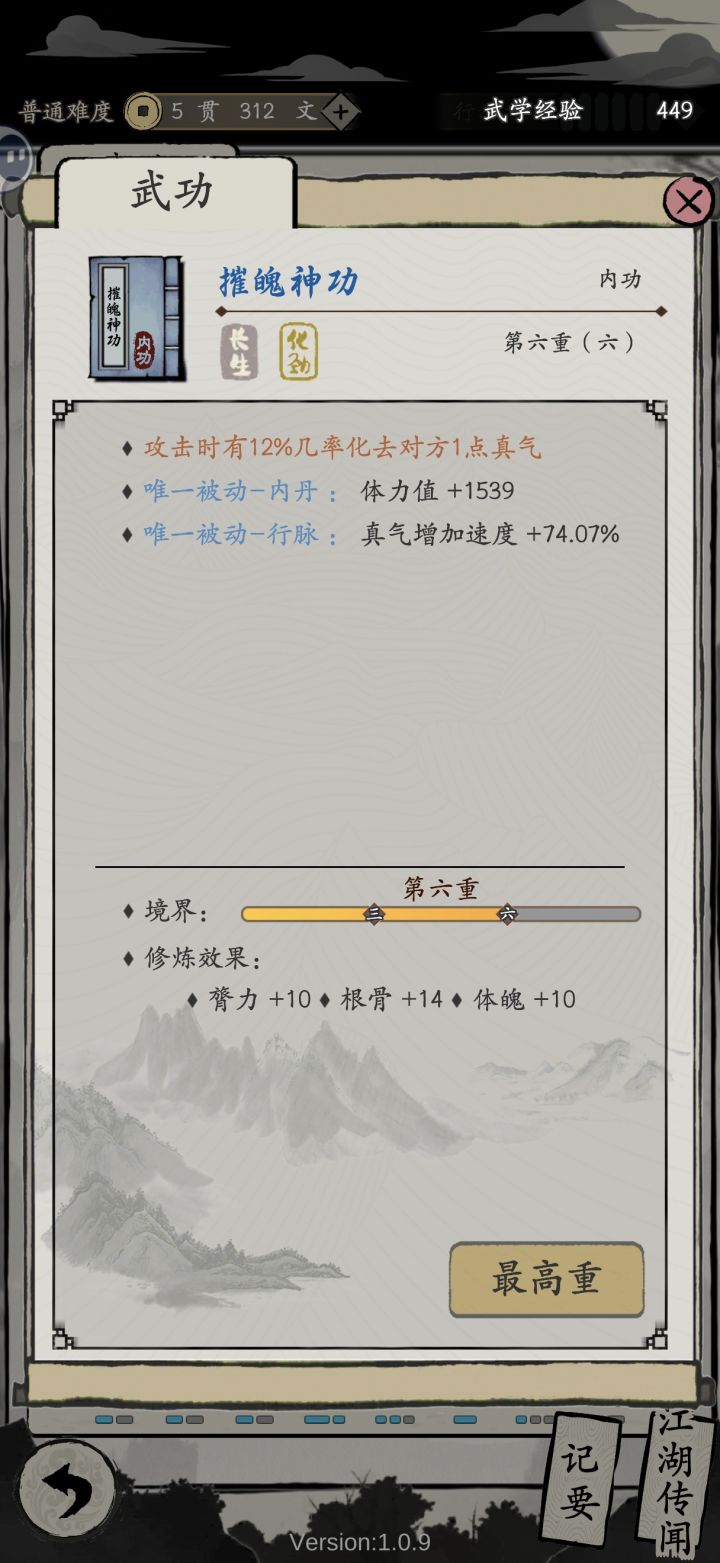 前言:在四维160,10体,12武,下结合另一个大佬28岁速通思路的关于真武噩梦难度下平滑过度到掌门思路的延伸。需要看一定量的广告。部分江湖任务因为游戏特性必须手操。因为真武是绝对正义门派,所以需要控侠义值,不然负侠义每年结束广告看的飞起。因此也不建议玩儿真武刷分,效率不如幽冥、长生、玄女、百花。正文:第一年全加根骨,选李白,懒惰,湛卢剑。第二年根骨+400后全加体魄,选三国,灵丹妙