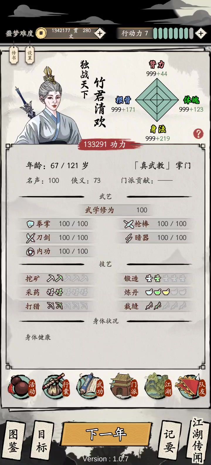 众所周知,游戏里像什么官兵,杀手,擂台这种任务,跳过都是打不过的,为什么呢,因为敌人默认功力总比你高20分之1,于是一个大胆的想法在我脑中浮现 我于是修改2亿功力和10万4维,10万脊力的伤害打在2亿功力神仙上才堪堪破防。。。于是我请了高手助战,这高手也是个人物,伤害和我10万脊力差不多
