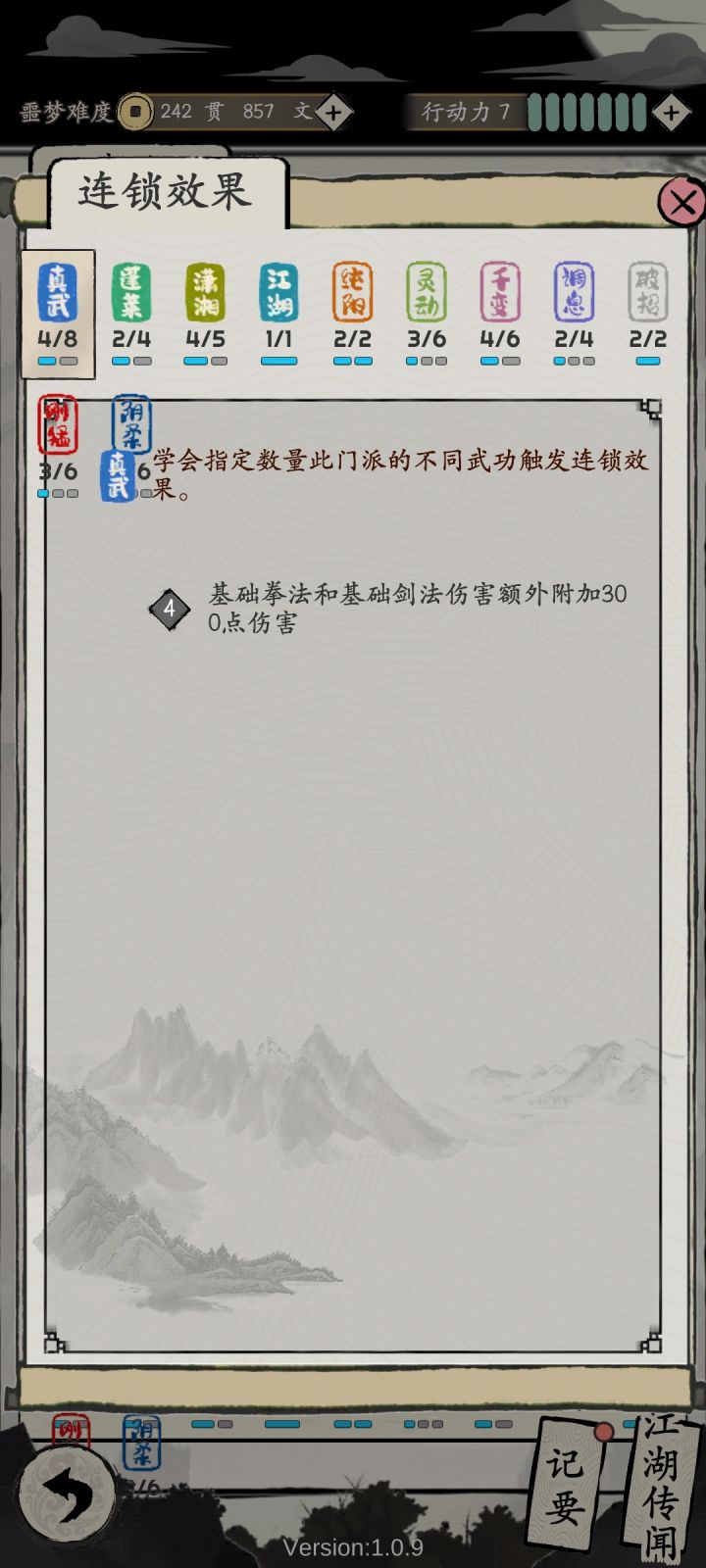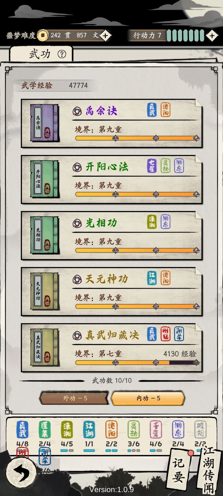 走真武教,视频武功装备流程都很完美不用多说,就说几个最重要的点,别玩千变没有用,虽然我没怎么爬塔,因为浪费时间,一次不落当掌门到死也最多2000多关,算过没有意义,所以目前版本这个游戏只要噩梦能一个打败东西厂的7个就算是最强打法通关,三个重点,第一千变没用,后面爬塔1500后基本不触发,第二左丘子,林术唐一般,噩梦排不上号,左秋子除非走长生们不然别用,林术唐需要很多菩提子,输出再高后面扛不住效果一