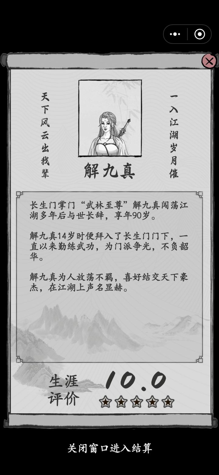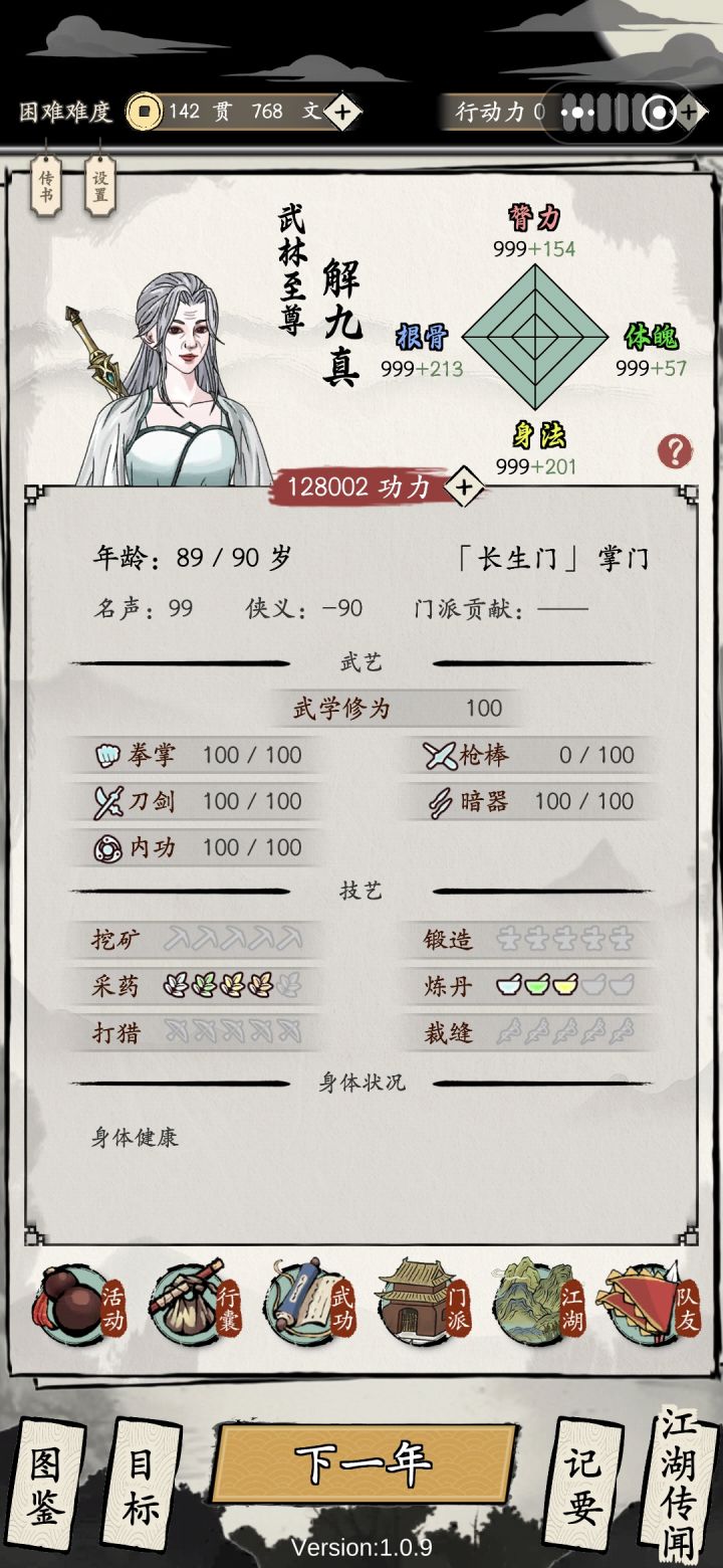 前言:在四维160,10体,12武,下结合另一个大佬28岁速通思路的关于真武噩梦难度下平滑过度到掌门思路的延伸。需要看一定量的广告。部分江湖任务因为游戏特性必须手操。因为真武是绝对正义门派,所以需要控侠义值,不然负侠义每年结束广告看的飞起。因此也不建议玩儿真武刷分,效率不如幽冥、长生、玄女、百花。正文:第一年全加根骨,选李白,懒惰,湛卢剑。第二年根骨+400后全加体魄,选三国,灵丹妙