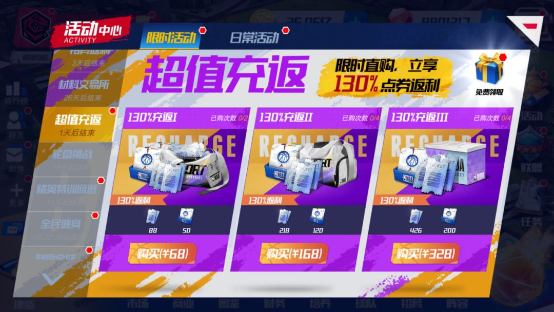 130%点券充返活动开启 黑金拉塞尔全新登场 更有全明星球员返场助兴 累计登录获取特训传承券等 各类超值活动等你参与! 【130%超值充返】 活动时间 6月16日18:00-6月30日24:00 活动详情 大师技巧心得限时直购,立享130%点券返利! 【黑金名宿——拉塞尔】 上线时间 6月17日00:00 活动详情 邀请全新黑金名宿——拉塞尔加入你的名宿殿堂,点亮奖杯,提升球队战力! 获取方式:转