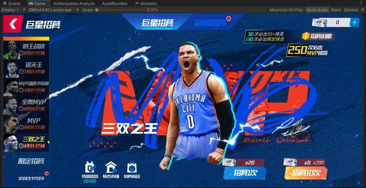 雷霆万钧,三双之王既出鞘;引领潮流,萌神约圣齐登场!三双之王-MVP威少招募卡池活动时间:8月8日 18:00-8月15日18:00活动期间,可使用【MVP特惠招募券】在【MVP招募】池中,招募MVP雷霆威斯布鲁克。MVP卡池全员首次十连免费!至多抽取250次,成功将MVP雷霆威斯布鲁克签约入队!130抽必出SS+限定球员,每30抽必出大师球员!(本次MVP球员无外显套装,且之后无外显