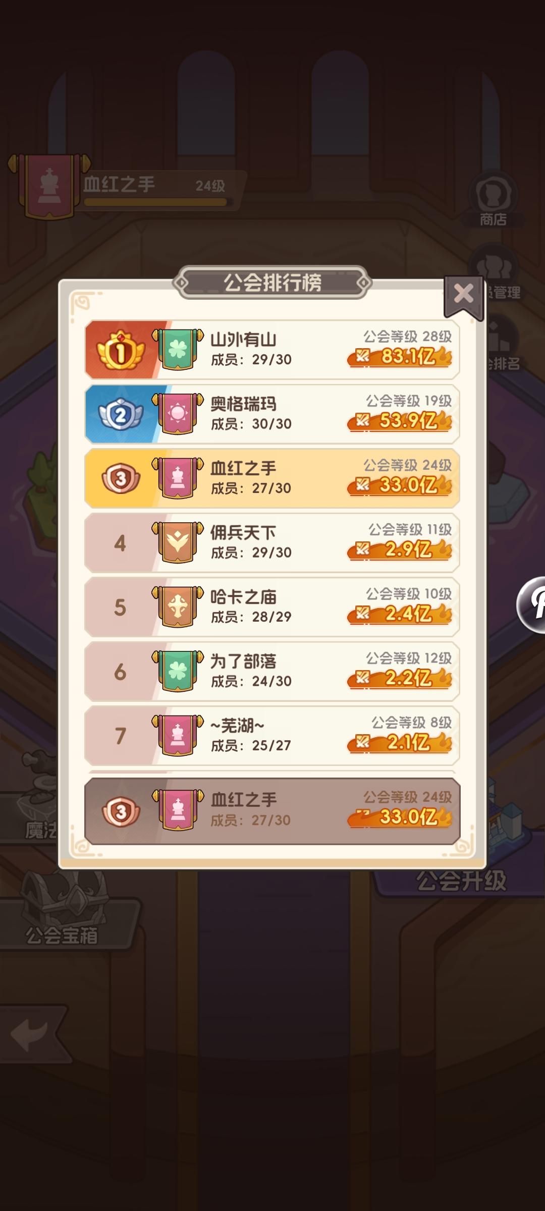 #香草英雄团勇气测试最近的这次更新真是太好了,成功让我白嫖到排名第三的公会会长位置,人都退坑了,其他公会也没几个活人。
