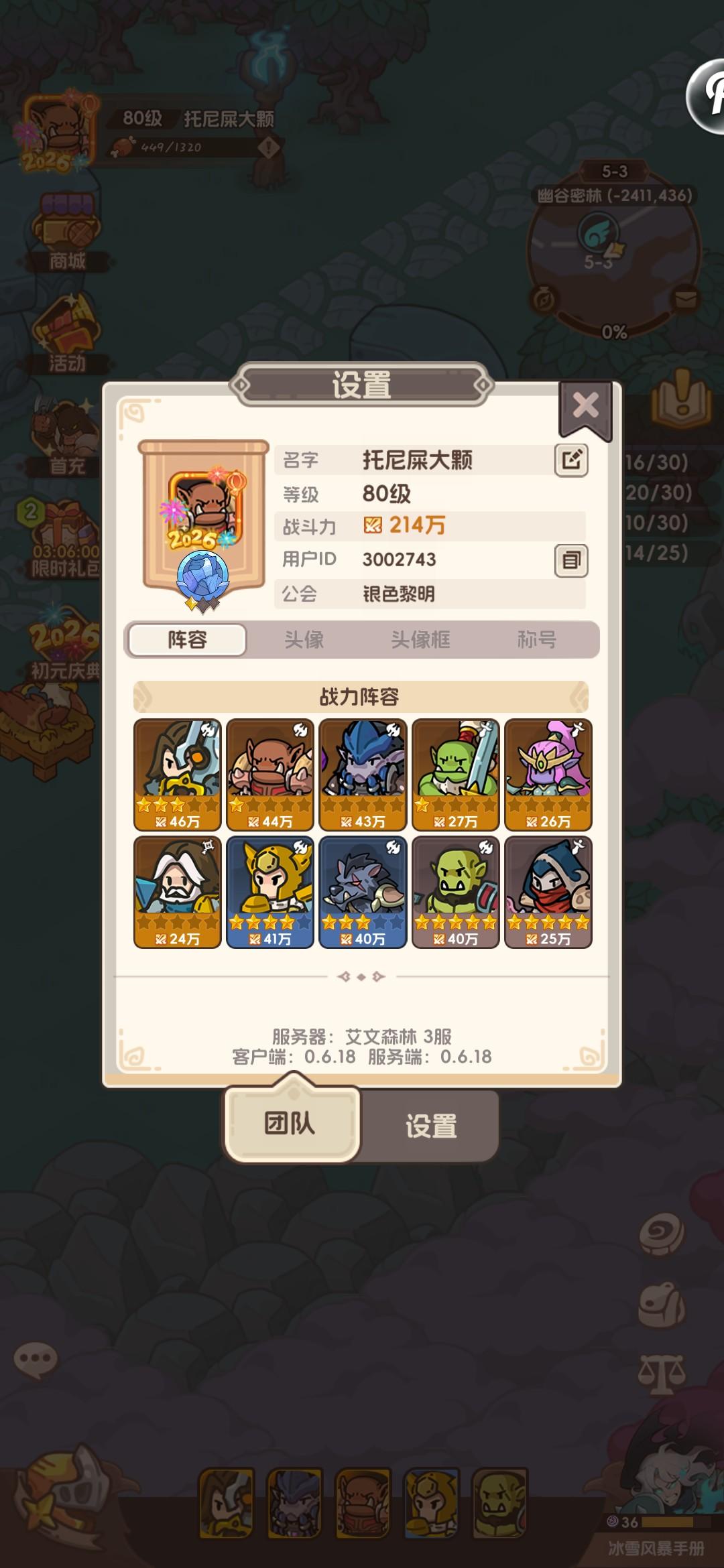 #香草英雄团勇气测试刚玩的时候看人说兽王厉害,宝宝能抗,然而不氪六块根本拿不到三星兽王,一开始玩了三个号,只有这个走得久,应该是菜刀队的缘故吧由于这号一开始只抽到了德鲁伊和瓦王,就以这俩英雄组的队,但是也没有能抗的前排3天了还卡3-3,有一天突然想到后排那么脆不带了行不行,而且战士装备自带吸血,然后就把后排全下上了5战士,正好抽到了惩戒骑,aoe清小怪贼舒服,于