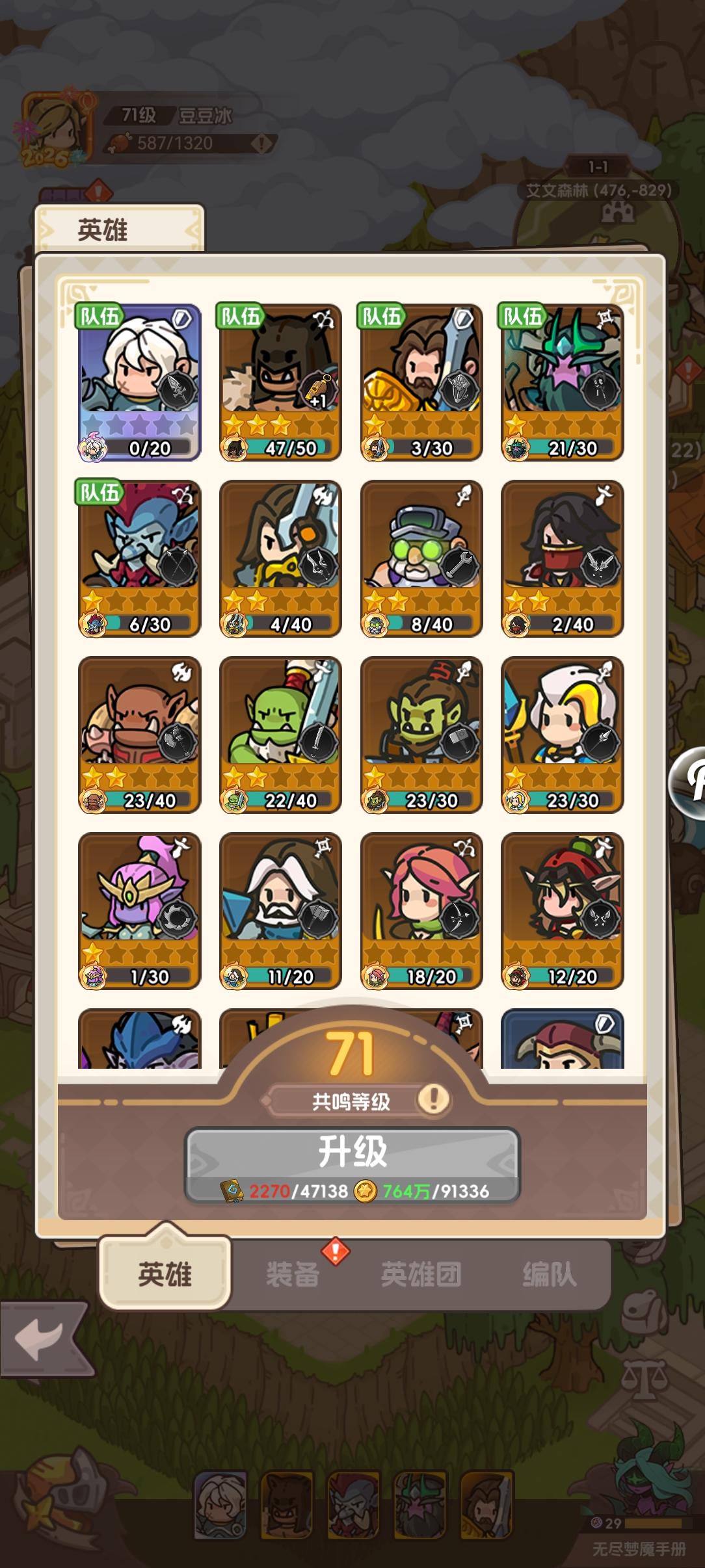 #香草英雄团勇气测试刚玩的时候看人说兽王厉害,宝宝能抗,然而不氪六块根本拿不到三星兽王,一开始玩了三个号,只有这个走得久,应该是菜刀队的缘故吧由于这号一开始只抽到了德鲁伊和瓦王,就以这俩英雄组的队,但是也没有能抗的前排3天了还卡3-3,有一天突然想到后排那么脆不带了行不行,而且战士装备自带吸血,然后就把后排全下上了5战士,正好抽到了惩戒骑,aoe清小怪贼舒服,于