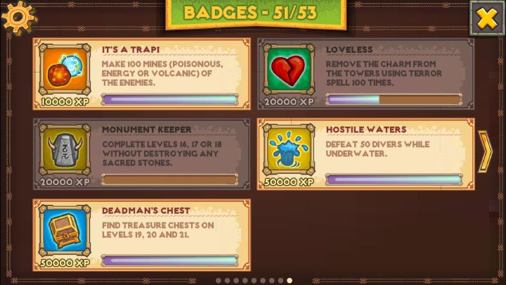 玩到23关我已经决定卸载了。我知道有大神通关了,但是对我这个游戏白痴来说,已经尽我最大努力了。到最后游戏就有点过分了😠那个寺庙一样的东西是干嘛的?我耗蓝不但没有蹦金币反而出来老巫婆给我的宝石偷走了,尝试了N次决定用为数不多的骷髅,买蓝一次性把那个寺庙满了,然后????眼睁睁看着那几个臭婆娘把我的宝石都搬走了。 ??????????????????我的骷髅??我的蓝…我的金币…我的宝石…