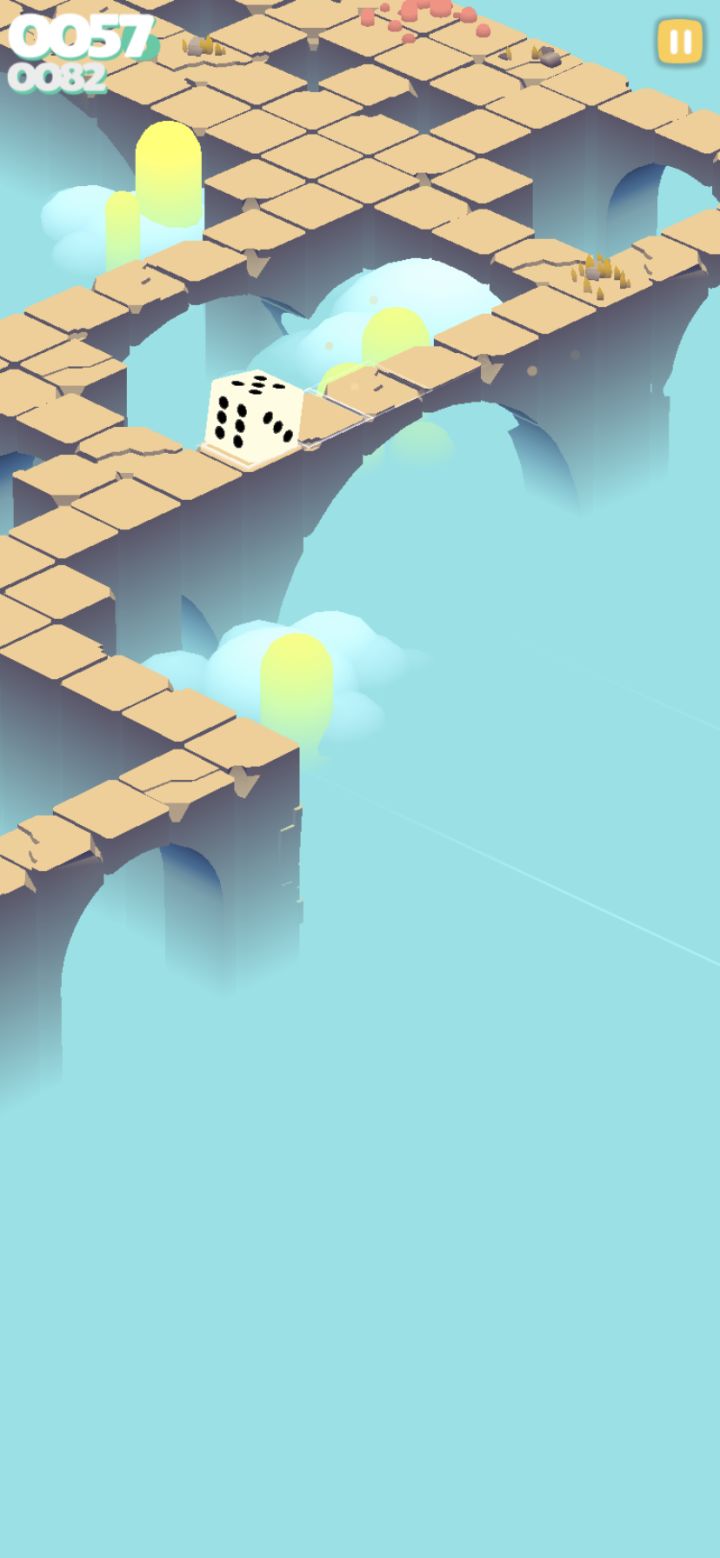 1.游戏里面有三种图标,红色星星吃了后会使步数增加速度翻倍,紫色沙漏吃了之后会使翻滚速度变快或变慢(大部分是变慢),金色星星我吃过一次,不过....emmmm....我没发现有什么用,小方块脑袋上会有金星星x3的标志,至于有什么用就等待小伙伴们发掘了