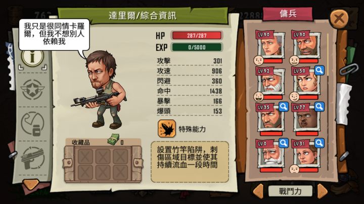 我早上刷出卡尔和弩叔了,这是弩叔的数据,弩叔技能是秒杀的,目前测试是这样,4万的血直接秒了,当然会有几率被免疫掉,范围技能,他爆头数据一级升就有270,估计升1级120左右,攻速是真的慢,单打的,攻击距离也很近