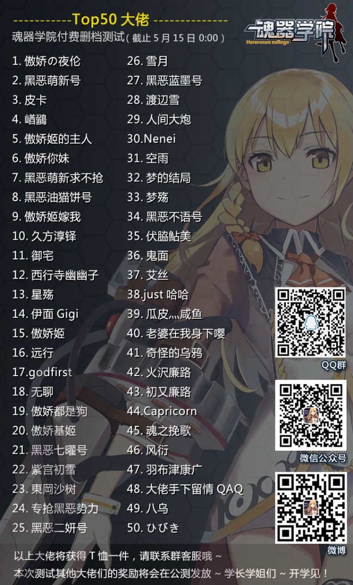 魂器师大大们,O(∩_∩)O~经过一个多月的相处,学院将和大家短暂哒告别!( ▼-▼ )目前本次测试的排行已经结算,各位魂器大大的努力和成绩已被铭记!o(* ̄▽ ̄*)ブ感谢每一位玩家在这45天的贡献与努力,制作组会努力将大家的期待付诸实际,期待着下次与魂器师大大们的重聚!q(≧▽≦q)我们想付诸很多心意于游戏中,也仍在不断地探索改进。大家的支持,鼓励,建议和指正将永远是指引我们前进的明灯