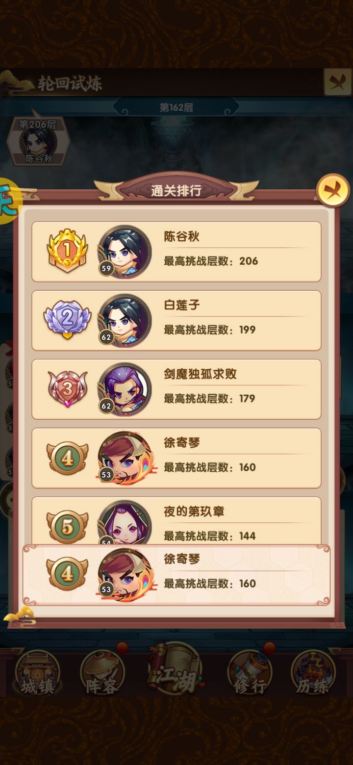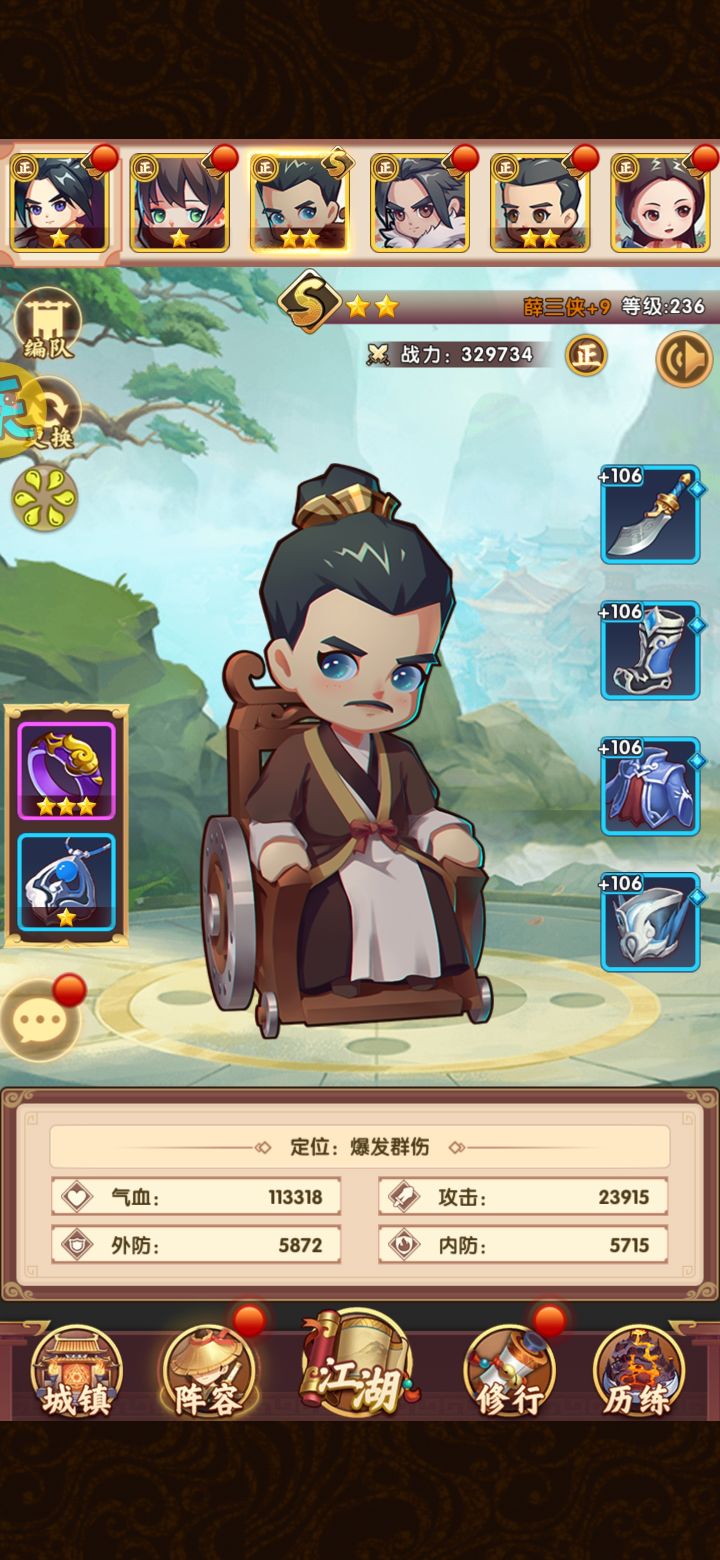 大概说下我的策略:1.这是个氪金能玩,不氪金也能玩的游戏。2.我是按大佬攻略用五正A级阵容开局,三侠跟六侠是输出,先整三侠,按攻略全A爬塔能打到300层左右。3.每天元宝就买5折招募卷,银币购买,试炼塔50元宝,加速1次。4.肝一点的拿计算器算下多少时间能升到能推进主线副本等级,调好时间推本。5.开区前四天有侠客战力冲榜活动,用A级优势会很大,因为S侠客本体不好得还要吃s狗粮,战力主要靠