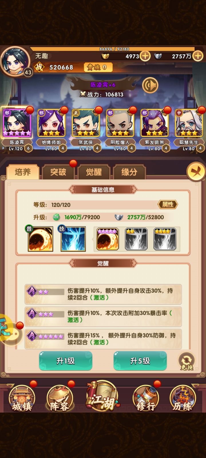 目前暂时43级,战斗力60万左右。游戏很好玩,期待更多玩法。