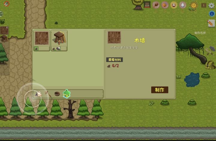 图标太小开始根本找不到 制作的地方 而且要采集的东西太多了 你还要抵抗一群野猪 攻击是被动的 没有躲避野猪的办法 木板撑不了多久 然后没有加快获取木板的方法 太脆皮了(不是饿死就是渴死 要不就是困死)