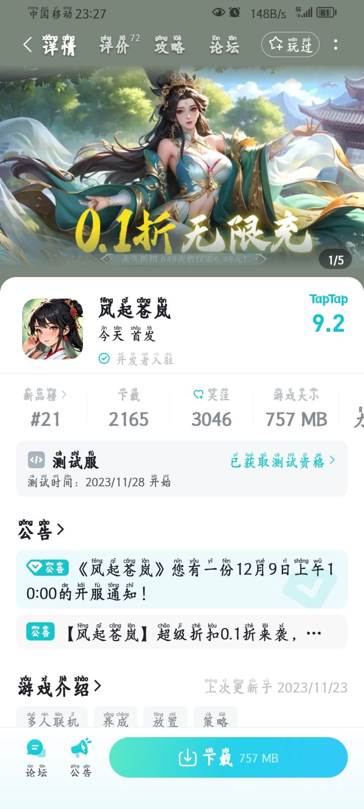 是前天公测的吧,这两天这个论坛也算是火了一丢丢,我来说说这游戏里面的一些氪金点好了。本人官服玩家,v11,8亿战力(充不动了,肝不动了,结果他出0.1了)首先是这个游戏已经停止更新了,后续有好多地方不完善,说活动的时候我会说到,入坑需谨慎。几个长期按时会出的活动:广结名士:主要是抽魔吕布神赵云魔关羽的(魔关羽相对后期出),官服保持在一月一出,这个属于氪金的大头,永无止境心愿抽奖