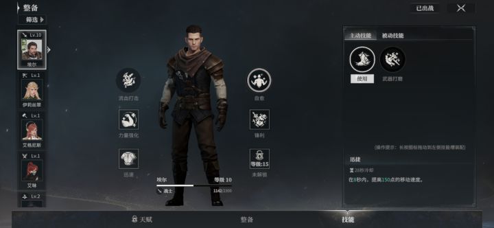 战斗外养成分角色和据点两部分。当前版本角色有六名,每个职业一名,后续有再添加的空间。单个角色有等级、技能、天赋三条养成线,等级通过单次游戏累积得到的经验值来提升。技能并非数值养成,而是通过等级来解锁不同技能倾向,有组合搭配空间。天赋养成暂未开启,功能入口已经预留。