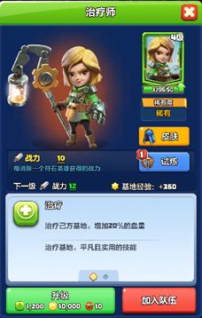 【英雄档案】治疗师 —— 基地奶妈亲爱的召唤师们大家好呀!又到了我们的英雄档案时间了,这次给大家带来的英雄名为治疗师,她是位3段白银解锁的英雄,也是我们能够获得的第一个奶妈。那让我们看看她有怎样的表现吧。 【英雄介绍】绿色阵容的治疗师,她一头金色的短发,腰间挂着散发荧光的试管(大概是用来治疗基地的吧),左手上的金属手套散发着浓浓的科技感。右手手持法杖,连接处还有着一颗齿轮,在其末端也挂着治