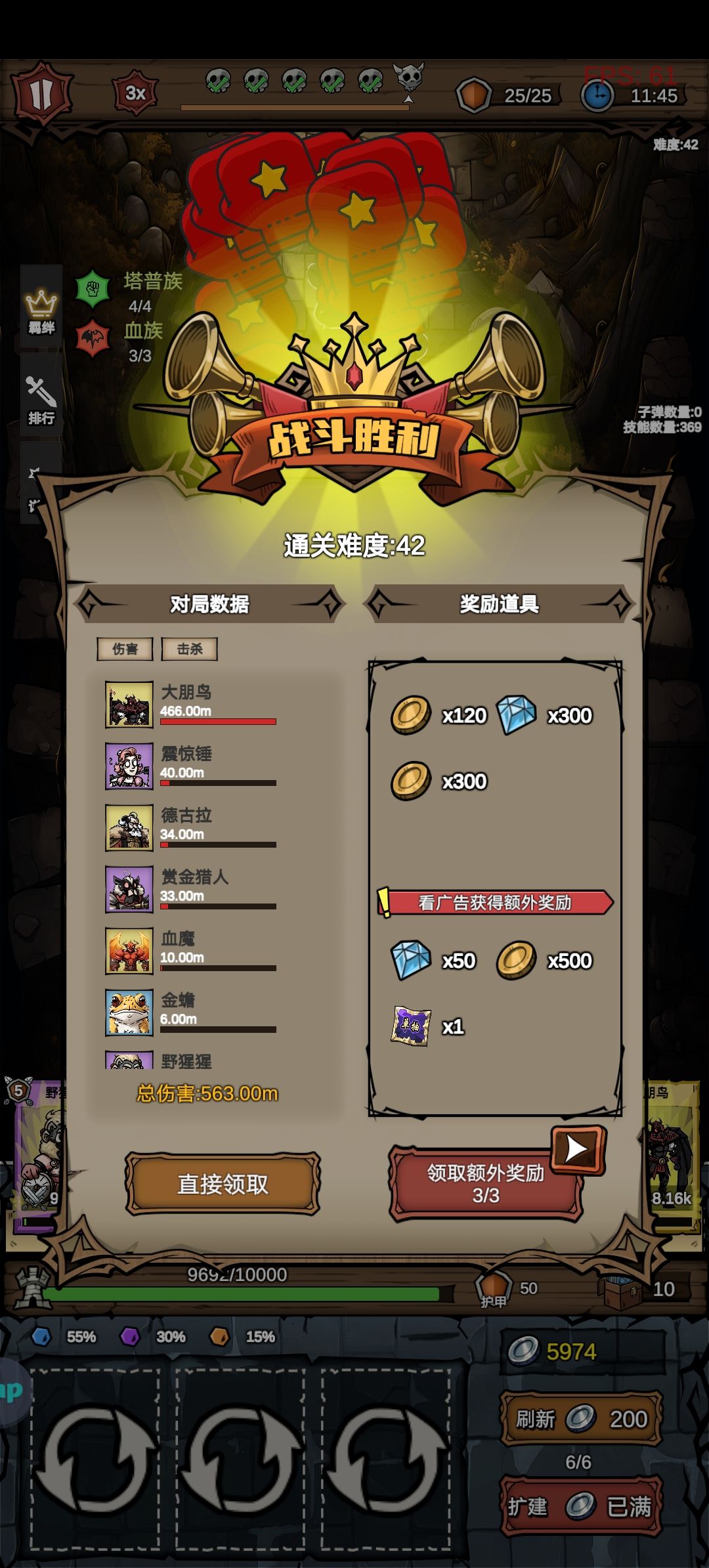 阵容就是血族,财源和射手,其余是凑数的,开局刷三财源攒钱,十级还是十五级前刷三射手过boss,之后给寒冰满级,精灵王子没必要,25波前卖掉财神和金蟾上三血族,之后boss就看脸了,我打的第一个boss死前还有两三千血而已