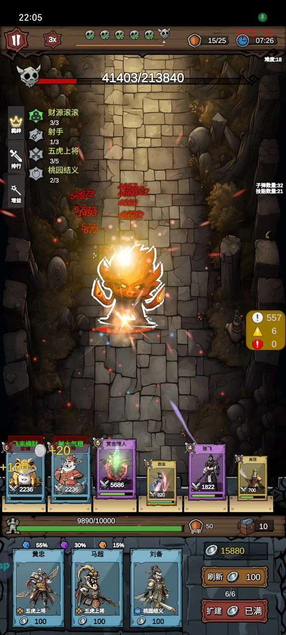 首先开局一定要有三个金币的英雄(财神、金蝉、赏金),先开两位置,有财神上财神,有金蝉上金蝉,一直吧他们两个升个5级,然后开第三个位置上赏金,建议带射手三个(精灵王子、赏金、寒冰),打副本这5个就够用了,打无尽建议带5虎,无敌[表情_微笑]