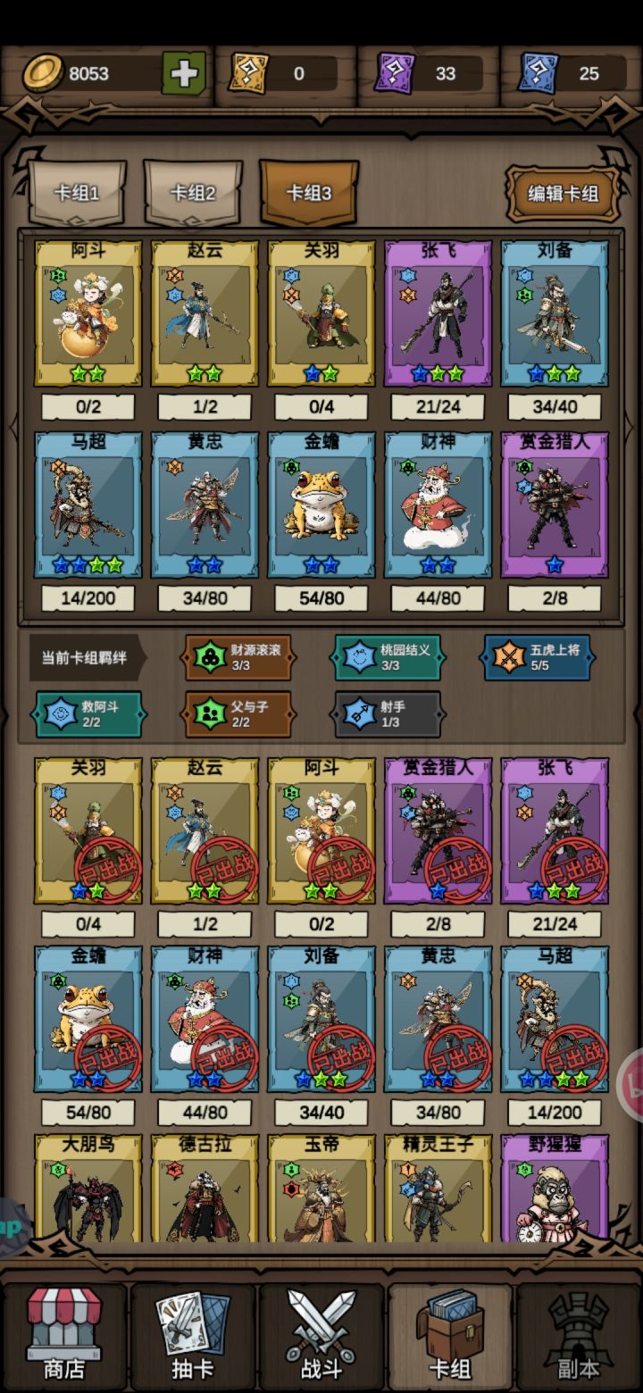 基本阵容:三财源,三射手(固定的)补位可选:金卡:赵云≥关羽>德古拉>孙悟空(孙悟空的技能好像有bug晕不了怪)核心:卡组除了上面固定的六张卡,其余都以金卡补充。PS:唯一一张紫卡是赏金思路:蓝卡3张,紫卡一张。开局容易d出赏金凑出三财源,金蟾一个技能100块,非常容易五星。d到五星后牌库里面都是金卡,就可以慢慢搜了运营:开局拉三,d三财源。其他都不要要,优先开出羁绊。三财源全5星