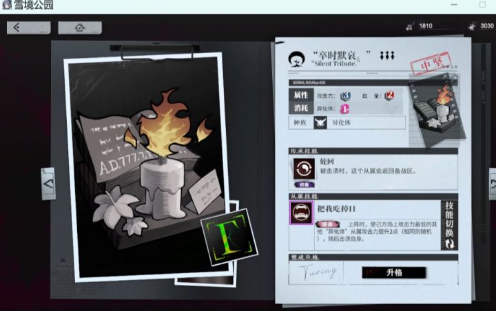 我们异化体别的不行,打肉鸽倒是一套一套的😋话不多说,开搞。😆首先我们需要打通主线2-3-2拿到“轮回切片”,全游戏只有这一张,且行且珍惜。但是手机上只开了第一章,所以对不起,做不到。然后我们去清单页面找到墓碑,将“轮回切片”传承给墓碑,墓碑本身需要先解锁第二个技能,可以去抽心声池抽取,也可以花800心屑兑换。我们接下来在找到活实体,将“自爆切片”传承给它,“自爆切片”可通过将棱镜-漫反生至