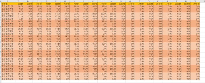 这里是溯汐雨。由于初始手牌的变动,以及雪境pvp节奏趋于后期,我对组卡估算器做了一次更新。本次更新将概率表改为初始四手牌对应表,同时将估算回合数扩容至20回合。另附腾讯文档链接【腾讯文档】组卡用估算器ver1.2https://docs.qq.com/sheet/DY2N1TWhZUndsRWJI?tab=000001#攻略#雪境公园#雪境公园攻略征集