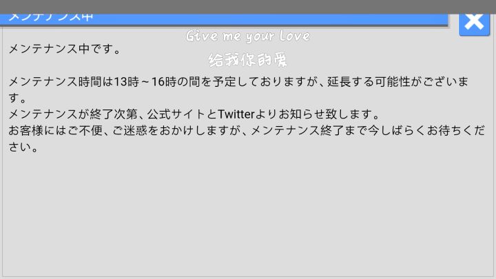 2019年10月1日通知(重要)关于今后的运营非常感谢您一直使用《I★CHU》有一件重要的事情告诉你们。从2015年6月开始运营的恋爱节奏游戏《I★CHU》,考虑到运营状况和市场环境的结果,得出了根据现在APP提供的满意服务很困难的结论。在10月开始的运营中,将会停止以下2点更新:1.举办活动2.新规和复刻卡池停止更新(一部分卡池依旧更新)对于至今为止4年又4个月来一直支持我们的p