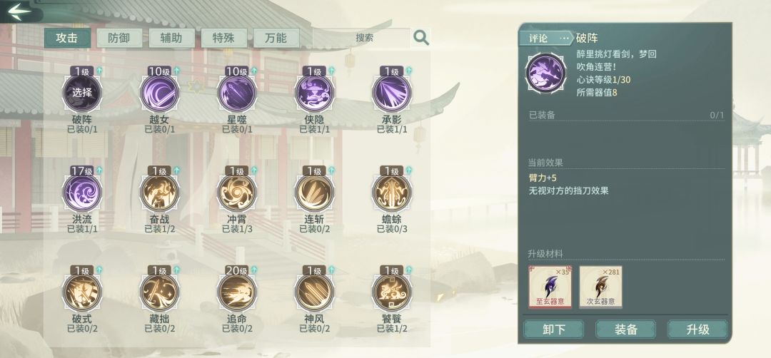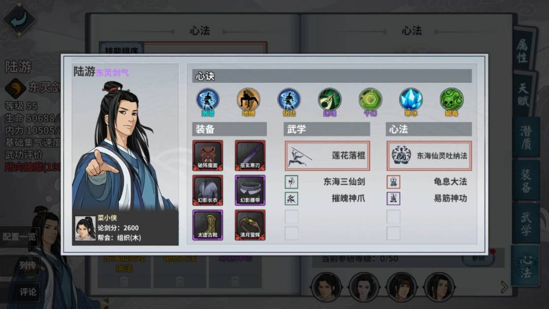 贴一个胜利图和解锁图 正文 其他资源需求: 过宗师夜战洛夜,一本大藏➕龟息 和巫玄内功 老规矩先上主角: 针对海无量过高闪避,所以我们这里采取了天机掌和天风心法堆命中的打法,这里可以省去灵兽火炙药品,因为用天机掌,所以自然我们就瞄上了拳掌武学中系数最高的初始武学两仪拳! 武学参演需求:白蓝色外功全满,两仪40级(极多参满),黑衣0级。江湖50,龙虎天风40,问玉20,洗髓可不参。 心决没啥好说的,