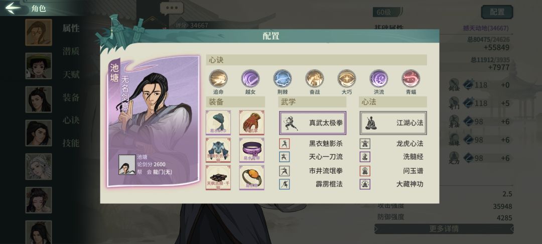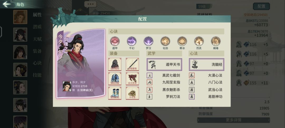 本配置是根据沽酒可饮大佬的配置改的 甲夫妻 陆游迷魂一定要拉满 蝎毒必须带 神爪也可以换成霹雳棍法加命中 这里糖丸也可以长白换光明圣火 封怒后容错率更低 不过个人感觉没什么必要 长白+血比较舒服 主角 帮组织的帮友打的时候发现刺杀不带也行 主洗髓 天山古剑没参研 其他都拉满 这个BOSS墨子悲丝和太极拳比较难打 这里推荐主刀魔 绝托雷 攻击白字一定要比主角高 臂力235(不是刚需 只是为了减少被控
